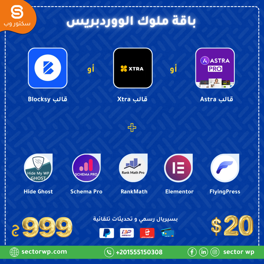 إذا كنت صاحب موقع أو مصمم مواقع ووردبريس، فأنت بحاجة إلى أدوات قوية تمنحك السرعة، الأمان، والسيو المثالي لموقعك او مواقع عملائك. باقة ملوك الووردبريس تجمع بين أقوى القوالب وأفضل الإضافات الاحترافية لتأخذ موقعك إلى مستوى متقدم، دون الحاجة لدفع مبالغ طائلة.